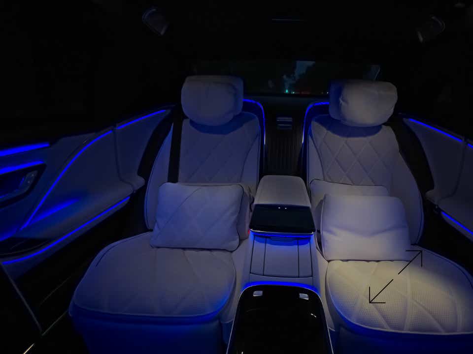 A private jet on wheels. Reclining executive leather seats, fold-out trays, ambient lighting, V12 performance, and whisper-quiet interiors. The vehicle of choice for weddings, celebrities, and red carpet arrivals.